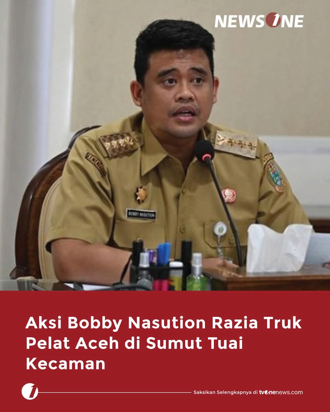 Tampak Bobby didampingi Asisten Umum Pemprov Sumut, Muhammad Suib menghentikan mobil truk itu dan meminta agar sopir mengurus perpindahan pelat BL Aceh ke pelat (BK) Sumut agar bisa melewati jalan tersebut.